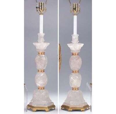 PAIR OF ROCK CRYSTAL & BRASS-MOUNTED LAMPS