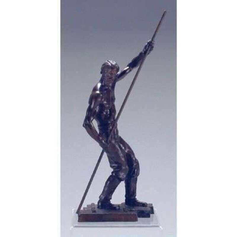 Modeled as an iron worker, monogrammed. H: 18 in.