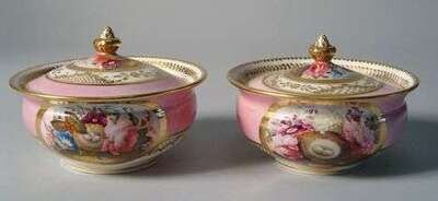 PAIR OF ENGLISH PORCELAIN COVERED SERVING DISHES