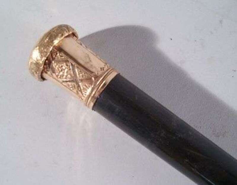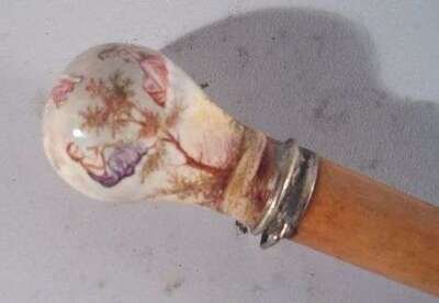 INTERESTING ENAMEL HANDLE & WOOD WALKING STICK