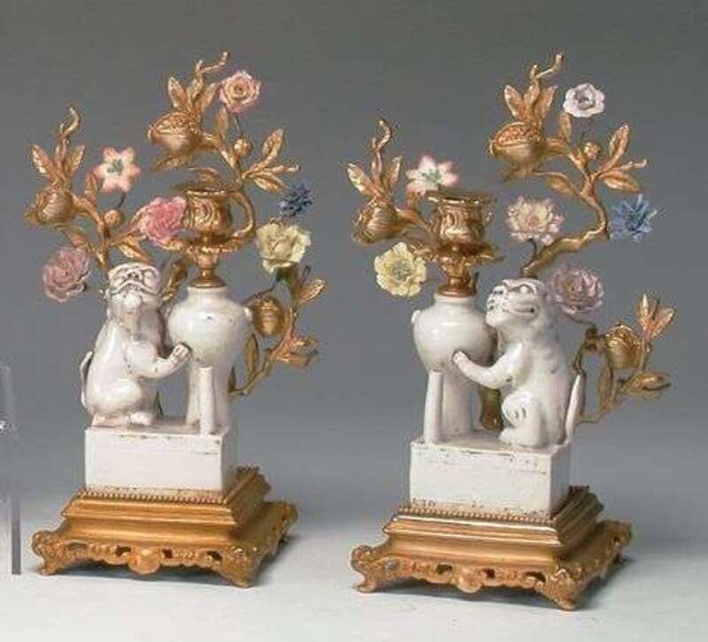 Louis XV style, raised on pierced square bases. H: 13 in.