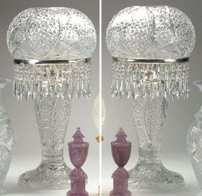 PAIR OF CUT GLASS MUSHROOM LAMPS