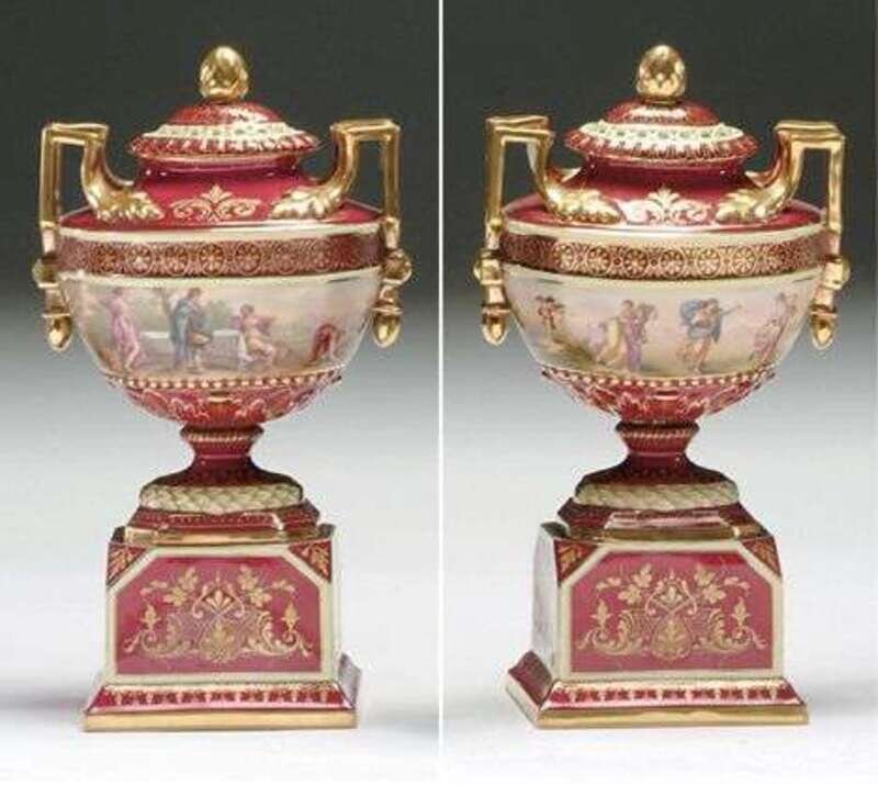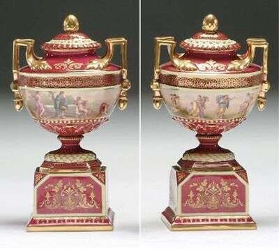 PAIR OF VIENNA PORCELAIN URNS