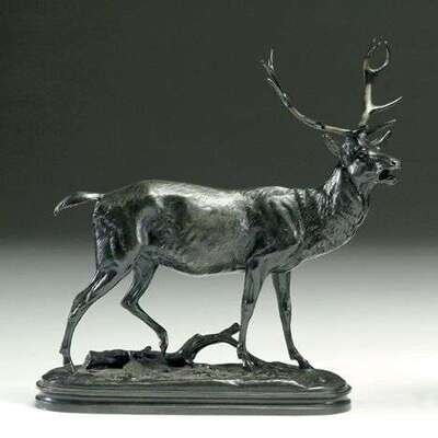 Bronze, brown patina signed Barye. H: 17 in., W: 14 in.