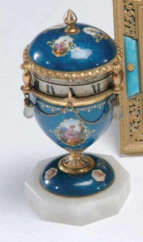 ENAMEL & GILT-BRONZE 'MYSTERY' CLOCK