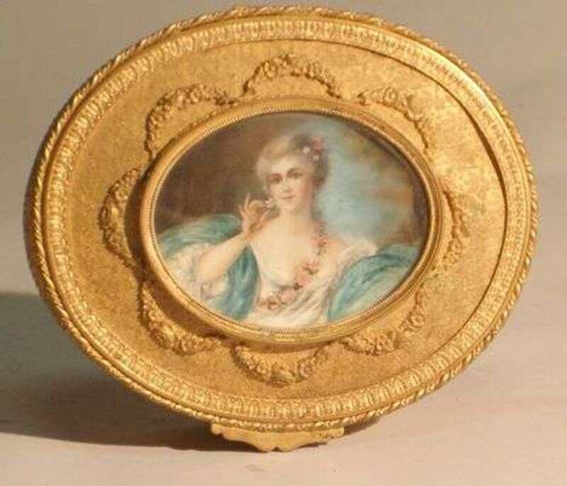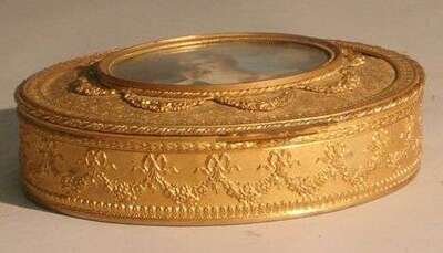 OVAL PORTRAIT MINIATURE OF MME DE POMPADOUR GILT BOX