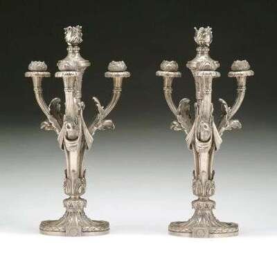GOOD PAIR OF CHRISTOFLE SILVERED-BRONZE CANDELABRA