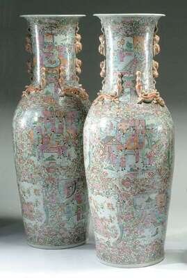MASSIVE PAIR OF FAMILLE ROSE VASES