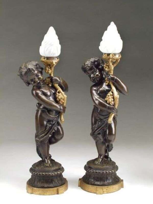 Bronze, converted to lamps. H: 42 in. altogether.