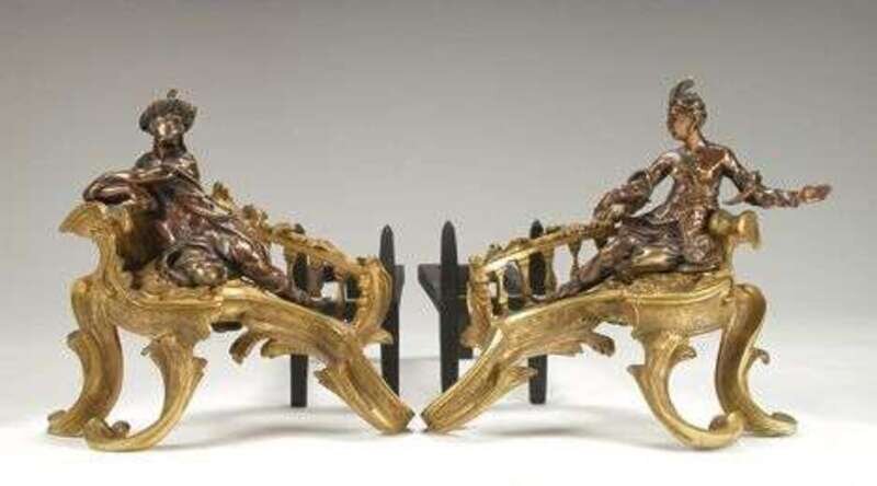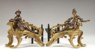 PAIR OF LOUIS XV-STYLE GILT & PATINATED BRONZE CHENETS