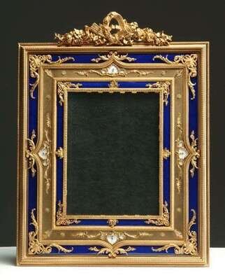 NEOCLASSICAL-STYLE GILT-BRONZE & GUILLOCHE ENAMEL PICTURE FRAME