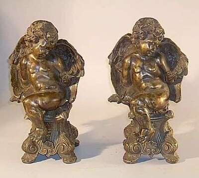 Finely cast in a seated position, each atop a Baroque-style base. H: 16 in.