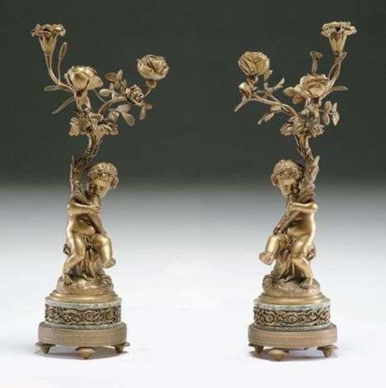 FINE PAIR OF BRONZE & MARBLE CANDELABRA