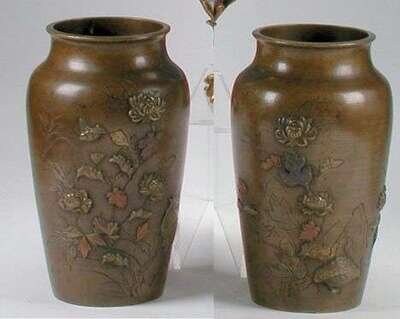 PAIR OF JAPANESE BRONZE VASES
