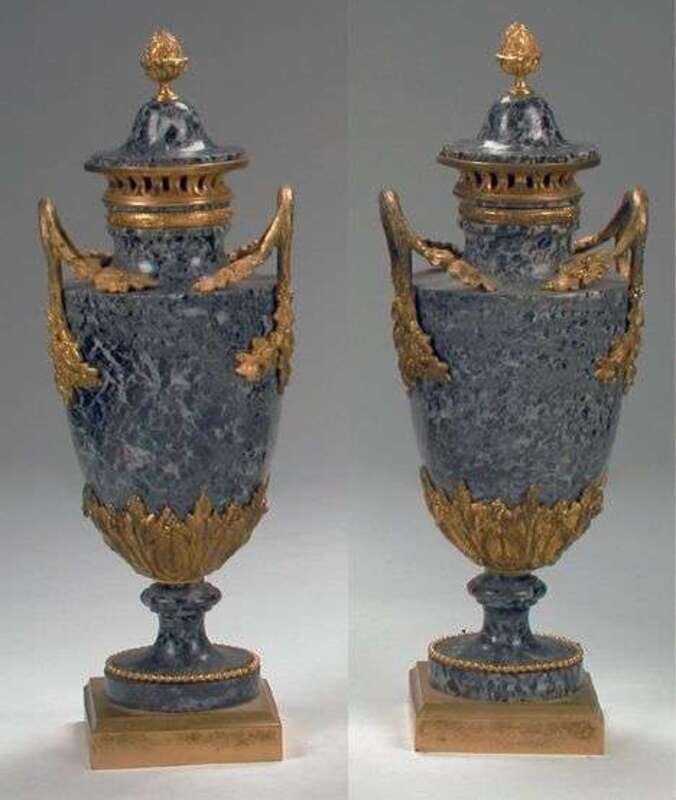 PAIR OF LOUIS XV-STYLE MARBLE & GILT BRONZE CASSOLETTES