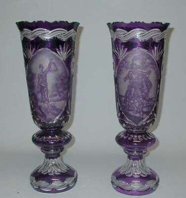 PAIR OF BOHEMIAN PURPLE GLASS VASES