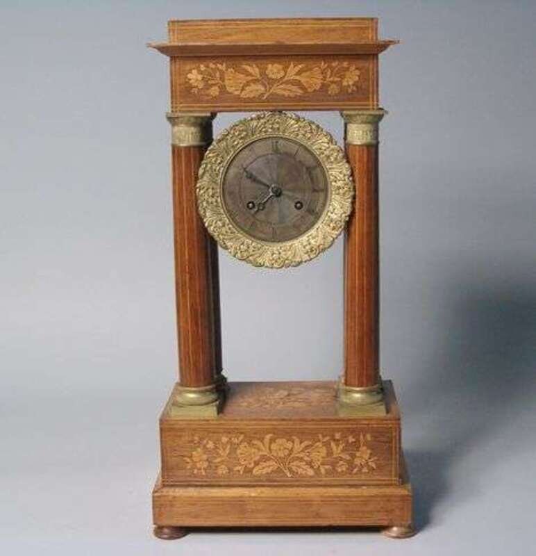 ROSEWOOD & MARQUETRY PORTICO BRACKET CLOCK