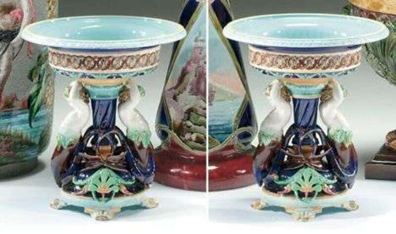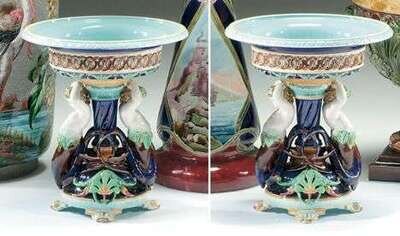 PAIR OF SARREGUEMINES MAJOLICA FRUIT STANDS