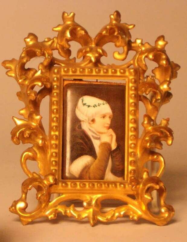 Painted after Holbein, with the image of a young woman in 16th century attire. H: 3 5/8, W: 2 1/4 in.