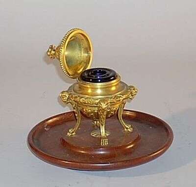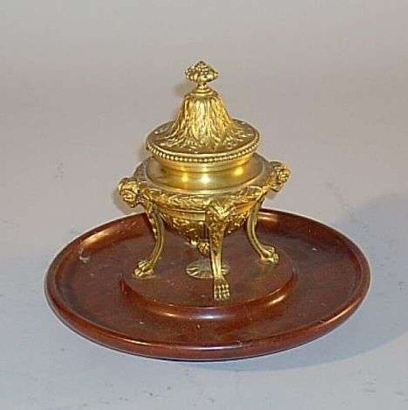 LOUIS XVI-STYLE GILT BRONZE & MARBLE ENCRIER