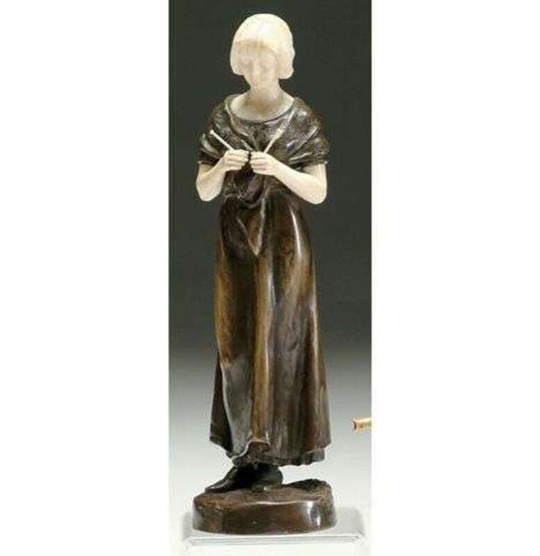 BRONZE & IVORY FIGURE OF A WOMAN KNITTING