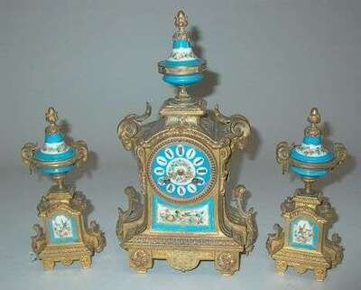 NAPOLEON III-STYLE PORCELAIN & GILT-BRONZE CLOCK GARNITURE
