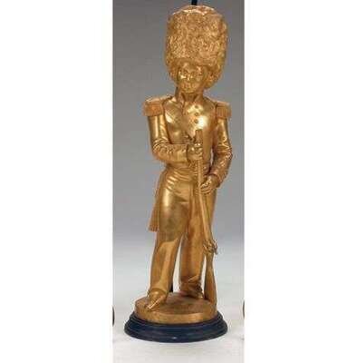 Signed A. Calmels & A. Weygard, modeled as a French soldier holding a rifle. Bronze. H: 21 in.