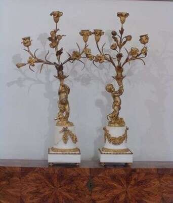 PAIR OF LOUIS XVI-STYLE ORMOLU AND MARBLE CANDELABRA