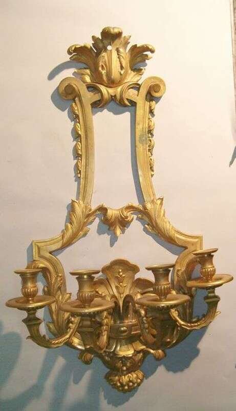 The open lyre-form back supporting four scrolling candlearms. H: 30 in.