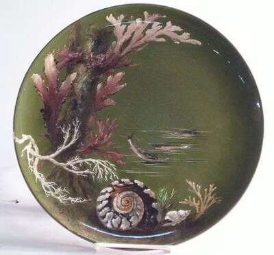 Painted with aquatic scene. Impressed Minton mark, signed indistinctly. W: 11 1/2 in.