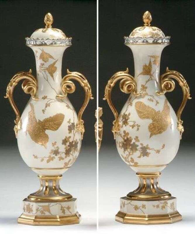 PAIR OF 'JAPONISME' PORCELAIN VASES