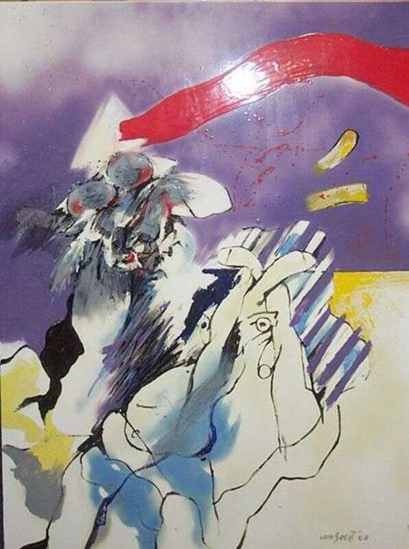 signed and dated "68", enamel paint on metal