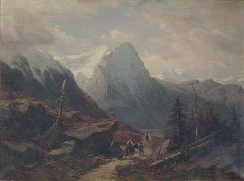TRAVELLERS IN AN ALPINE LANDSCAPE