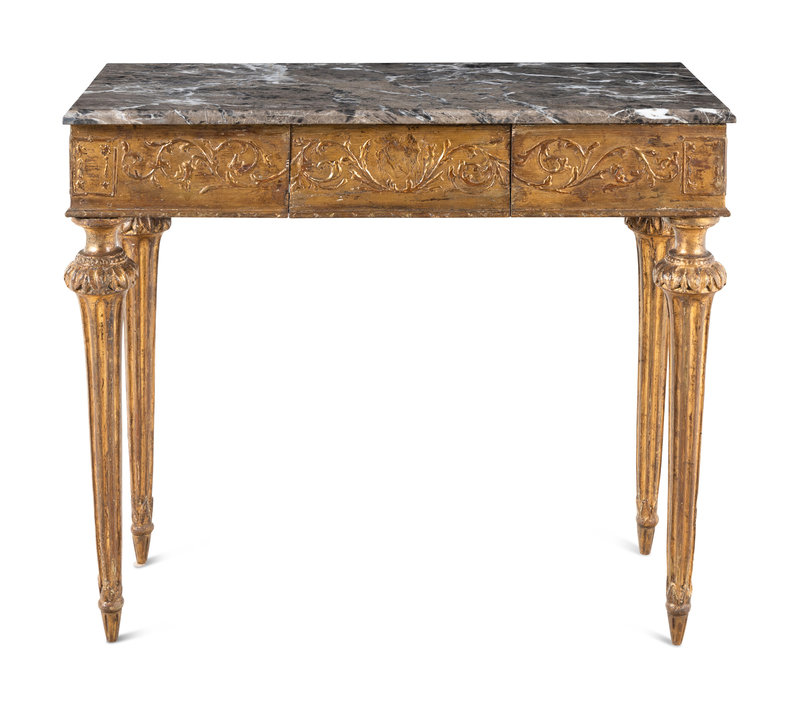 A North Italian Giltwood Marble-Top Console Table