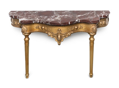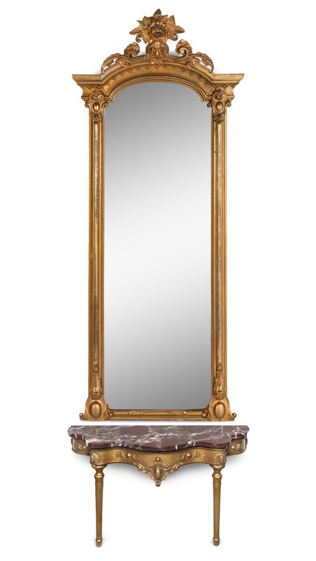 An Italian Giltwood Pier Mirror and Marble-Top Console Table