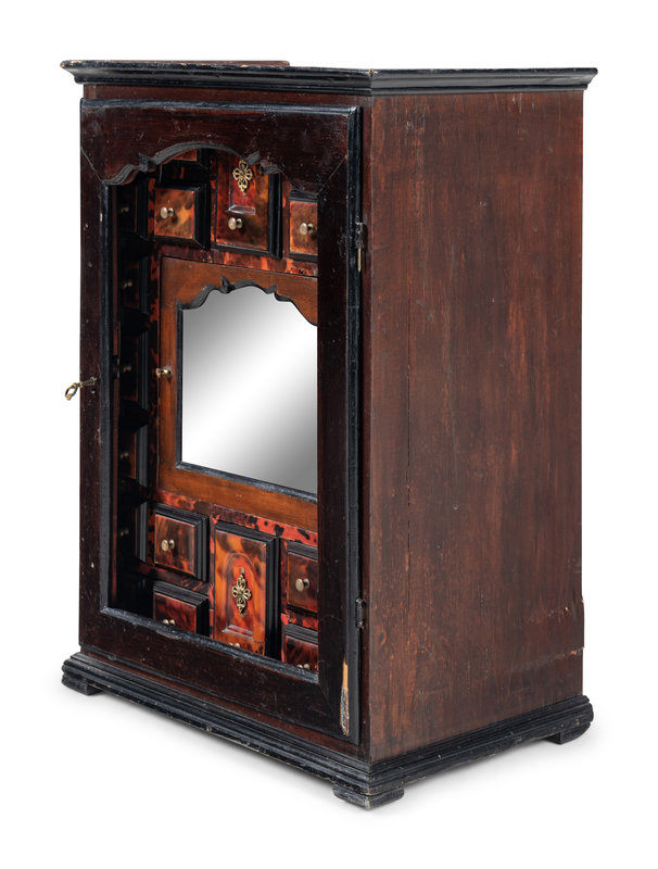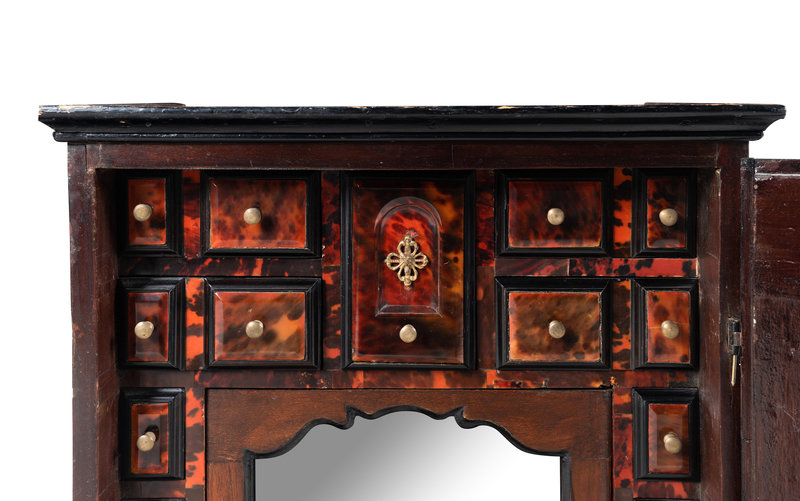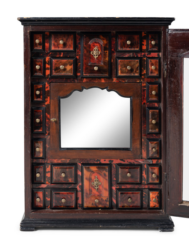 A Continental Tortoiseshell and Faux Tortoiseshell Veneered Collector's Cabinet