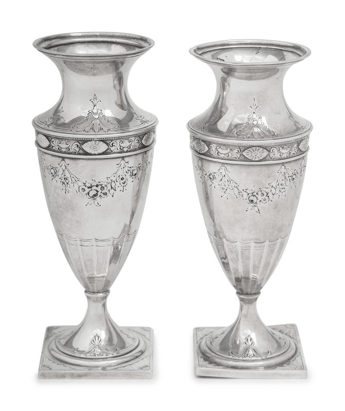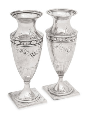 A Pair of American Silver Vases