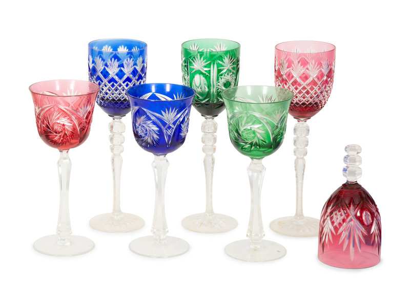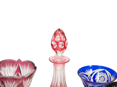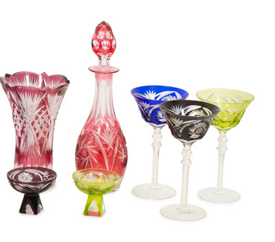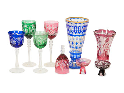 A Collection of Bohemian Colored Cut-to-Clear Glass Articles