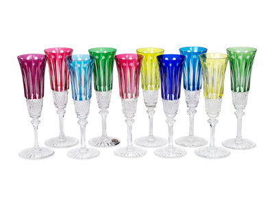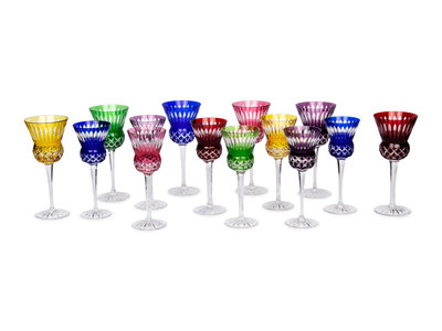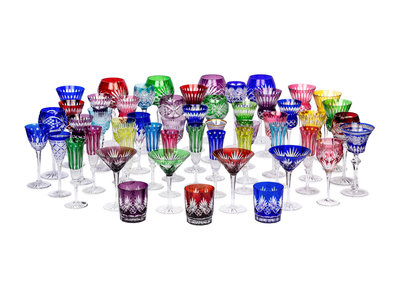 A Collection of Saint Louis and Other Colored Cut-to-Clear Glass Stemware