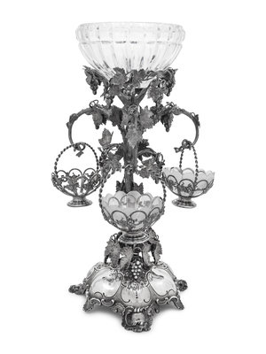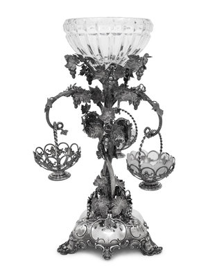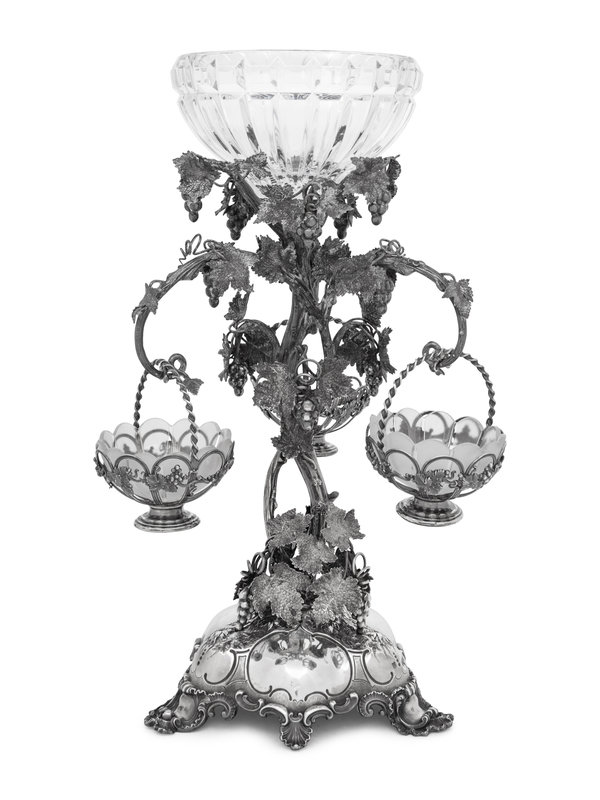 hallmarked for Sterling to foot of stand and underside of each basket, further inscribed 'Wordley & Co./ Liverpool' to underside of stand