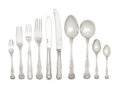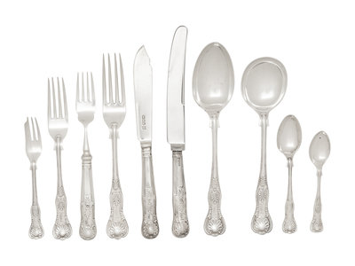 English King pattern, with engraved script monogram 'I' to the handles, comprising: