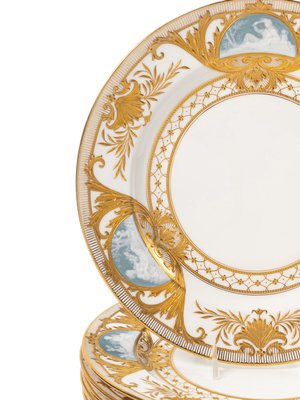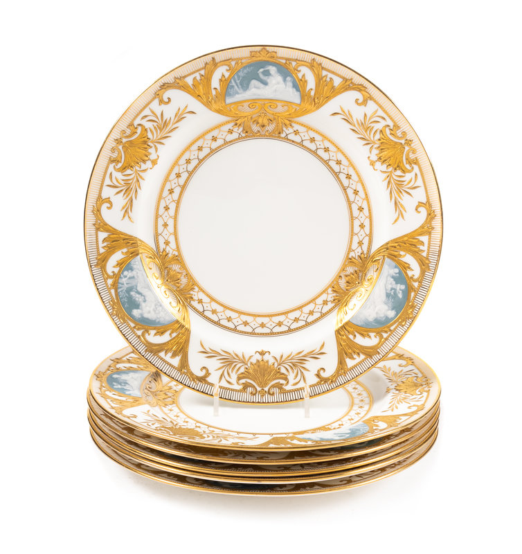 A Set of Six Mintons Pâte-sur-Pâte Porcelain Plates