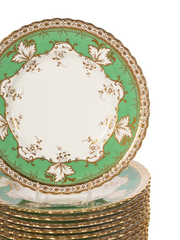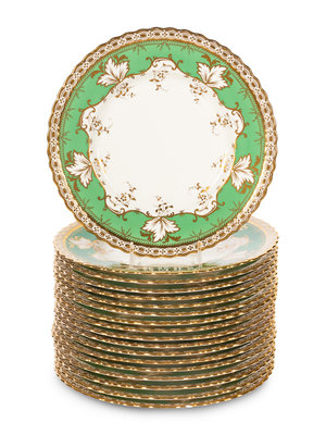 A Set of Eighteen Mintons Parcel Gilt Porcelain Dessert Plates