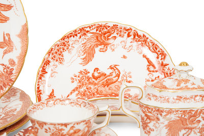 A Royal Crown Derby Red Aves Porcelain Dinner Service