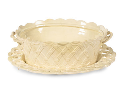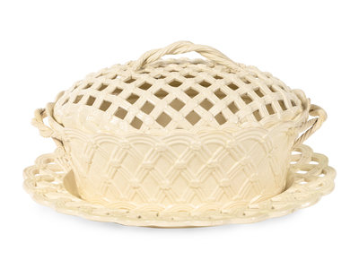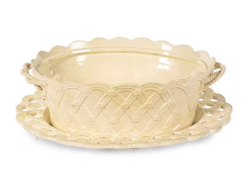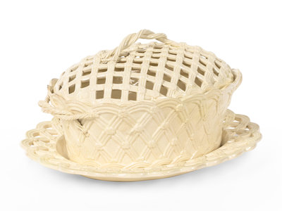 An English Creamware Covered Basket and Underplate