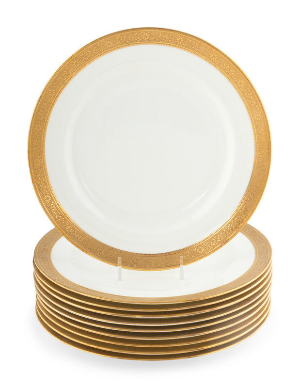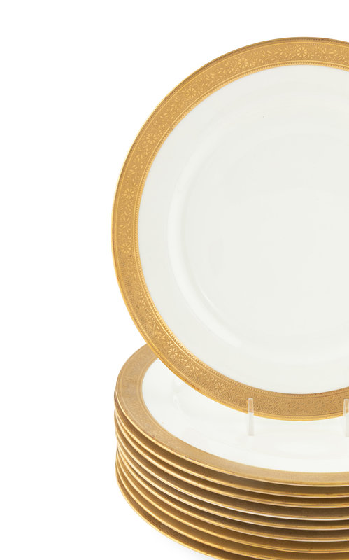 A Set of Ten Wedgwood Gilt Banded Porcelain Plates