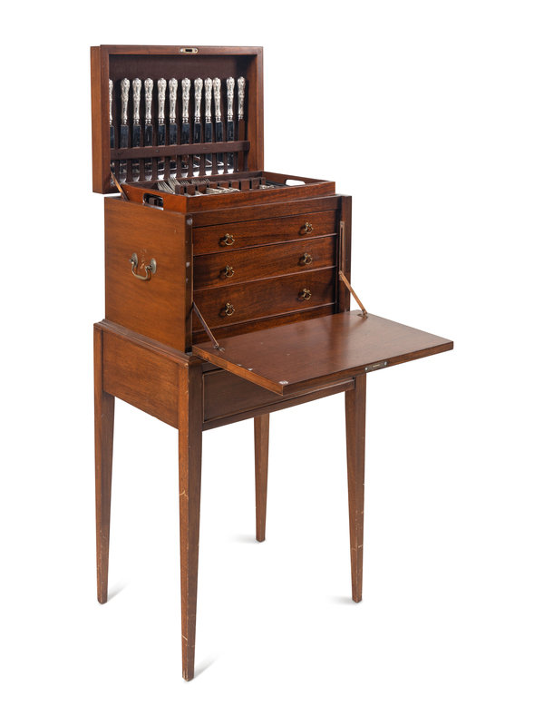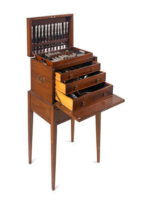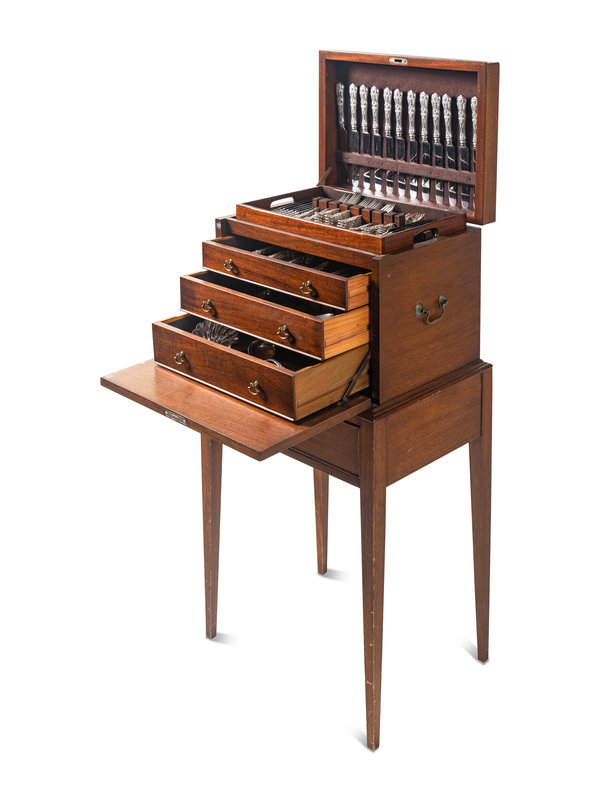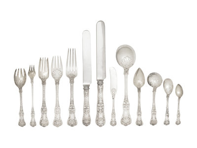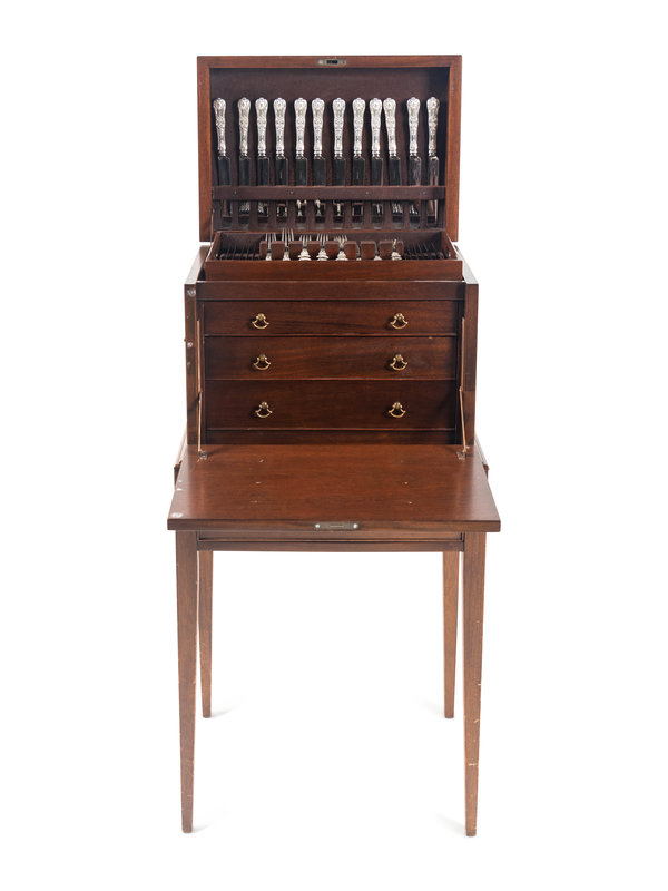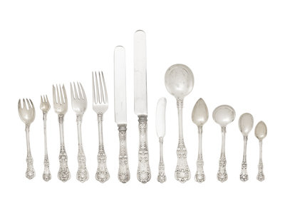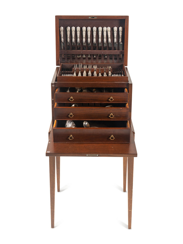 A Tiffany and Co. English King Silver Flatware Service in a Fitted Mahogany Chest
