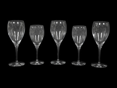 each with acid-etched Christofle mark to the foot, comprising 28 red wine and 26 white wine glasses; 54 items total.