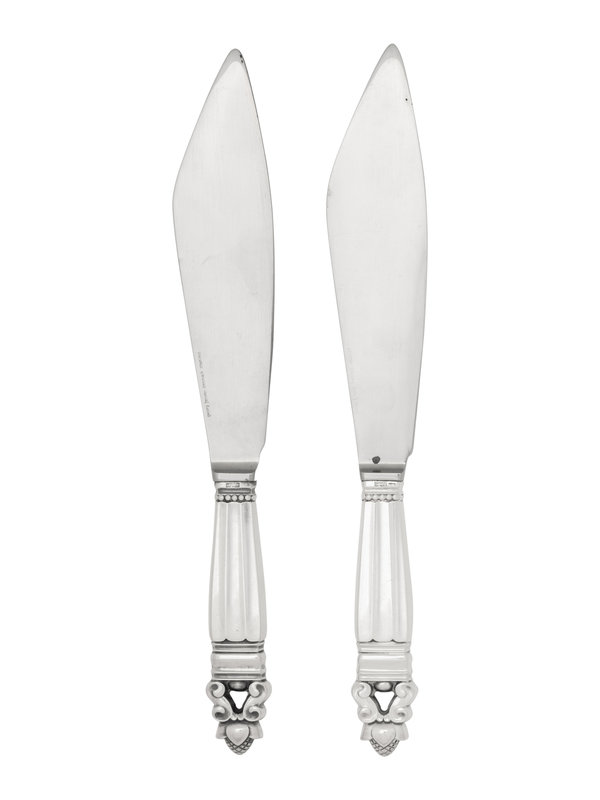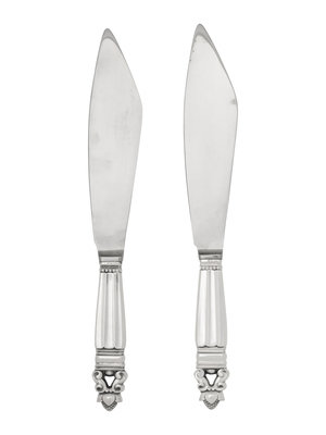 A Pair of Georg Jensen Acorn Silver Cake Knives