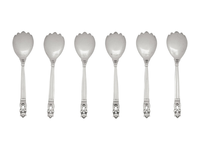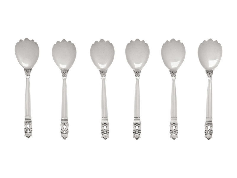 A Set of Six Georg Jensen Acorn Silver Ice Cream Forks